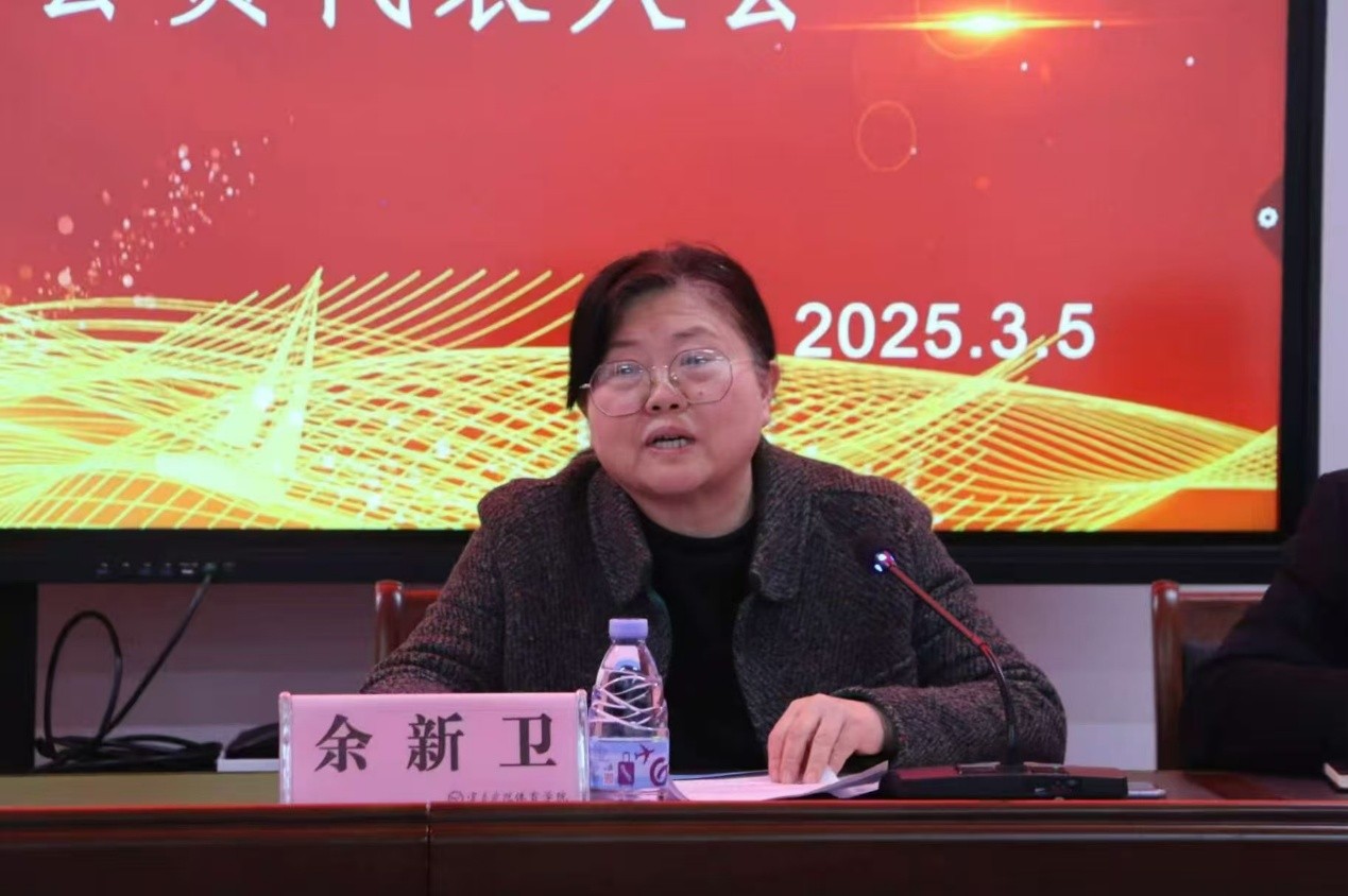 接着,校党委委员、副校长余新卫同志发表讲话,她对体育学院过去一年取得的工作成果表示充分的肯定,并提出几点要求:一是要提高政治站位。持续以习近平新时代中国特色社会主义思想武装头脑,全面、深入、联系实际地学习,激励干部职工勇担时代使命。二是要贯彻落实。深入领会习近平总书记关于教育的重要论述与考察江西时的重要讲话精神,以理论指导实践,提升班子履职能力。紧扣 “走在前、勇争先、善作为” 的目标,结合学院实际,务实创新,推动学校高质量发展。三是要完善管理。进一步健全民主管理机制,作为基层工会要充分调动教职工的积极性,在服务学校与服务地方发展中打造新特色、新品牌,开创新局面。