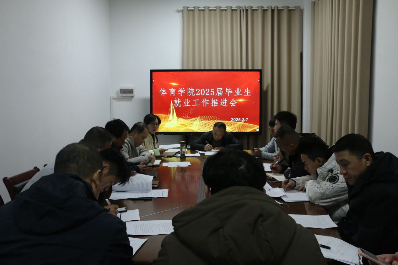 本站讯(学生记者 高悦)3月7日下午,体育学院在文化艺术中心小会议室召开2025届毕业生就业工作推进会。全体院领导、科室负责人、专业负责人、教研室主任、25届毕业班辅导员(班主任)等参加会议。会议由院党委副书记于梅主持。