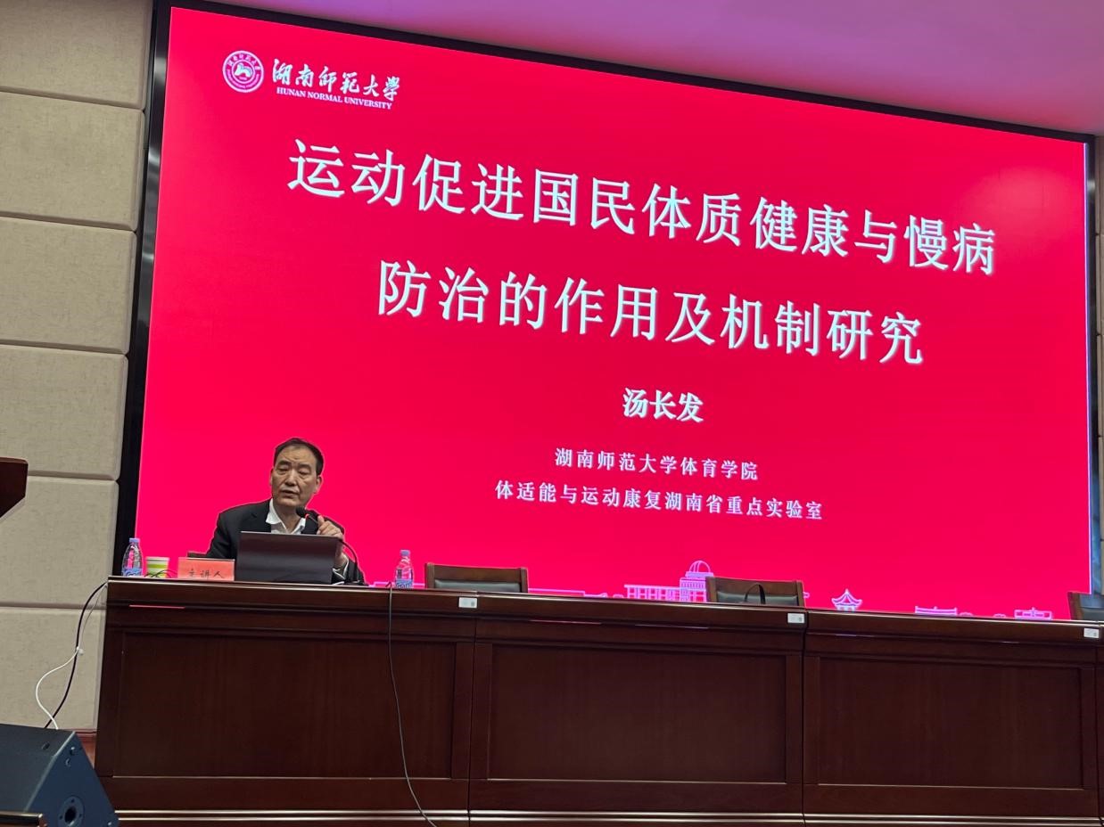 4月12日下午,湖南师范大学二级教授、博士生导师汤长发教授应邀莅临我校科技楼学术报告厅,为我校体育学院师生开展以“运动促进国民体质健康与慢病防治的作用及机制研究”为题的学术讲座。体育学院全体教师和部分学生代表参加,报告会由体育学院院长龙建新主持。