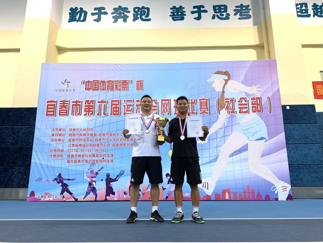 A组男双 蒋晓波、黄谱铨 荣获第二名;