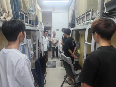 走访过程中,学院领导们深入学生宿舍与同学们亲切攀谈,详细了解他们的生活作息、学习情况,耐心倾听同学们在生活中遇到的困难和问题,并给予暖心建议。同时,仔细查看宿舍的环境卫生、设施设备状况,对宿舍的电路、插座、消防器材等进行全面细致排查;检查是否存在违规使用大功率电器、私拉乱接电线等情况。对发现的问题现场提出整改意见,并结合实际案例,向同学们强调宿舍安全的重要性,叮嘱大家务必提高安全防范意识,共同维护良好的宿舍环境。