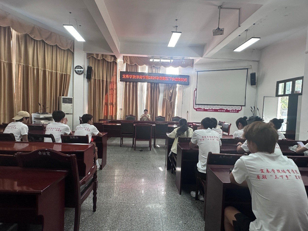 本站讯(学生记者 甘雪芹 颜丹)为贯彻落实习近平总书记关于青年工作的重要思想,引导和帮助青年学生在社会课堂中受教育、长才干、作贡献,7月1日,体育学院在体育馆一楼大会议室举行2025年大学生暑期“三下乡”社会实践活动出征仪式。体育学院团委副书记刘成及即将奔赴新田镇开展社会实践的学生代表参与出征仪式。会议由团委副书记刘成主持。
