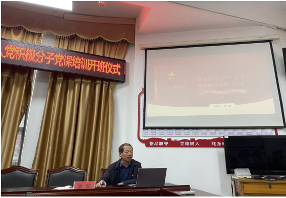 开班仪式在庄严的国歌声中拉开序幕,于梅致开幕词,对新一批入党积极分子们提出了要求和寄予期望。开班仪式后,谢军带领大家学习《全文学习二十大新党章,做新时代合格共产党员》。认真学习党章、严格遵守党章,是加强党的建设的一项基础性经常性工作,也是全党同志的应尽义务和庄严责任。谢军为同学们绍讲解党章的内容,促进学员们进一步深刻理解,使之内化于心,外化于行。