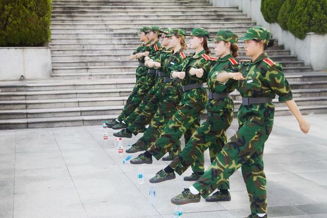 正午骄阳将地面烤至发烫,战术训练场化作“炼狱熔炉”。美术与书法学院林佳欣在定军姿时,汗珠顺着帽檐滚落,在军训服上晕开深色云纹。她目光如炬,紧盯前方教官的示范动作——正步分解练习中,抬腿高度必须达到25厘米,脚面绷直如尺,手臂摆动时前不露肘后不露手。尽管汗水模糊了视线,她依然咬牙坚持:“教官说,正步是军人的灵魂,每一步都要踏出精气神!”另一侧,文传学院的女生方阵正在练习齐步与跑步转换:齐步走时步伐稳健,听到“跑步——走!”的指令后,双手迅速握拳提至腰际,脚步频率骤然加快,队列却在尘土飞扬中依旧保持如刀切般笔直。“一、二、三、四!”此起彼伏的番号声与整齐的脚步声交织,仿佛在向烈日宣战。“跑步立定!”教官突然下达指令,学生们瞬间收步,双臂归位,身体如被钉入地面,连发丝都定格在风中。林佳欣感慨地说道:“站军姿时数过操场上的143片落叶,原来静止比奔跑更需要勇气;而跑步立定时稳住身形,才明白‘快与稳’的辩证法,是军训教给我的第一课。”