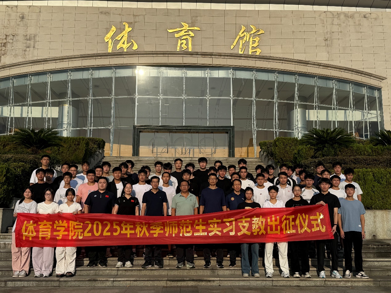 本站讯(学生记者 甘雪芹 潘俊杰)9月5日上午,体育学院2025年秋季师范生实习支教出征仪式在体育馆前举行。党委书记屈红林、院长范叶飞、副院长韩磊磊,实践教学负责人周雯艳,支教指导老师李胜男、王方雨及全体体育支教师范生参加本次活动,出征仪式由实践教学负责人周雯艳主持。
