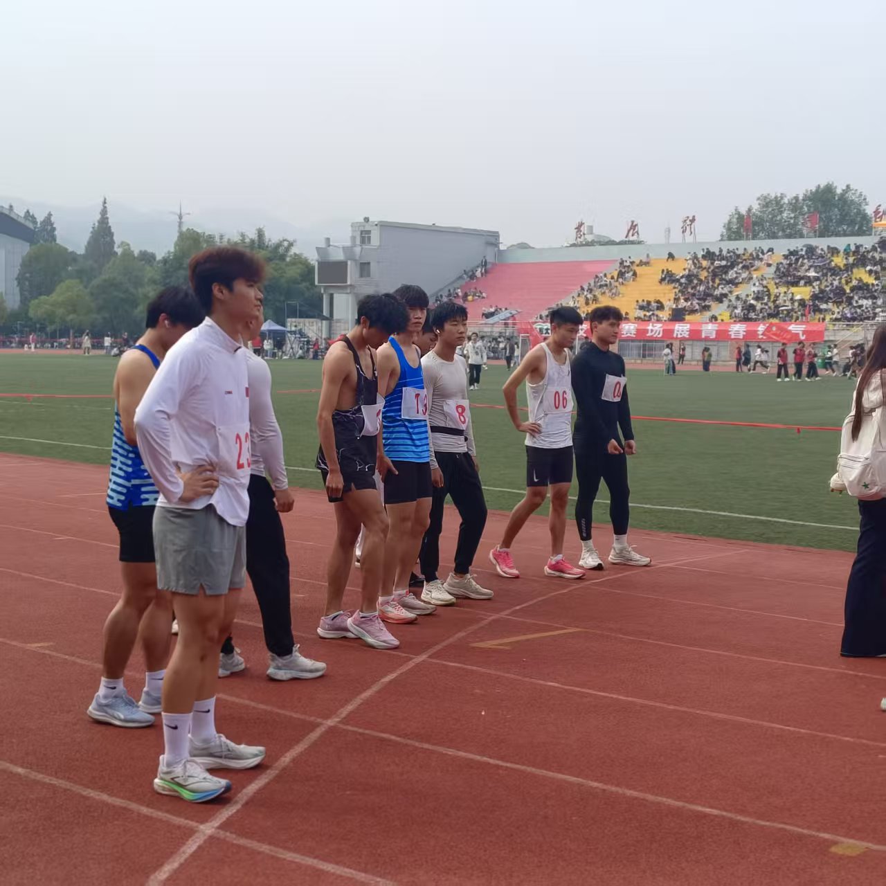 最后一圈铃声划破赛场,领先的运动员双目圆睁,奋力摆臂冲刺;身后的运动员虽面色潮红,仍咬牙紧追。冲线瞬间,全场掌声雷动。