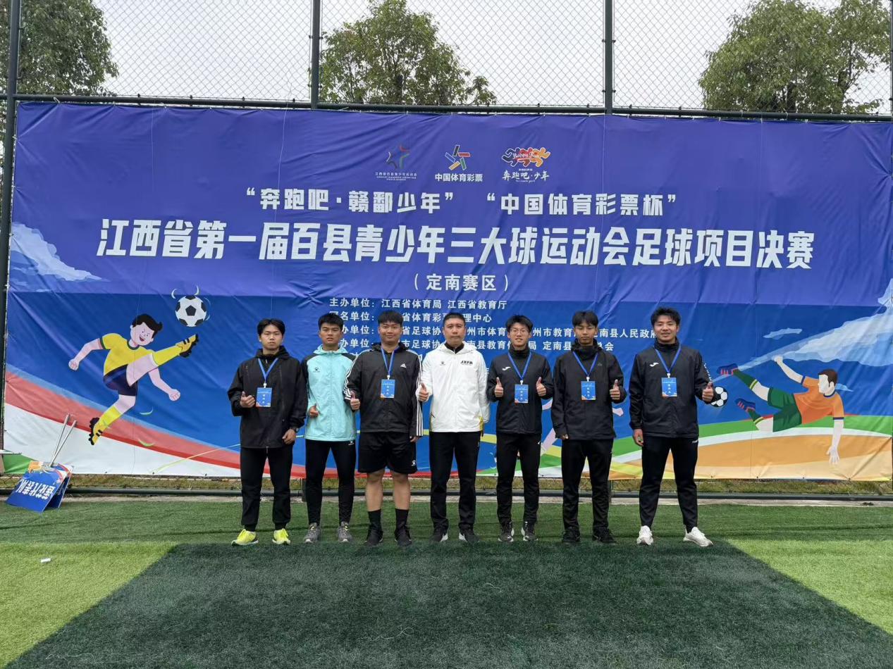 近日,由江西省体育局、江西省教育厅联合主办的江西省第一届百县三大球运动会足球项目决赛在江西定南隆重举行。受江西省足球协会选派,我院8名学生参与了本次赛事的裁判工作,他们以扎实的专业功底、严谨的工作态度和公正的执裁表现,赢得了组委会及各参赛队的高度赞誉,圆满完成了任务。