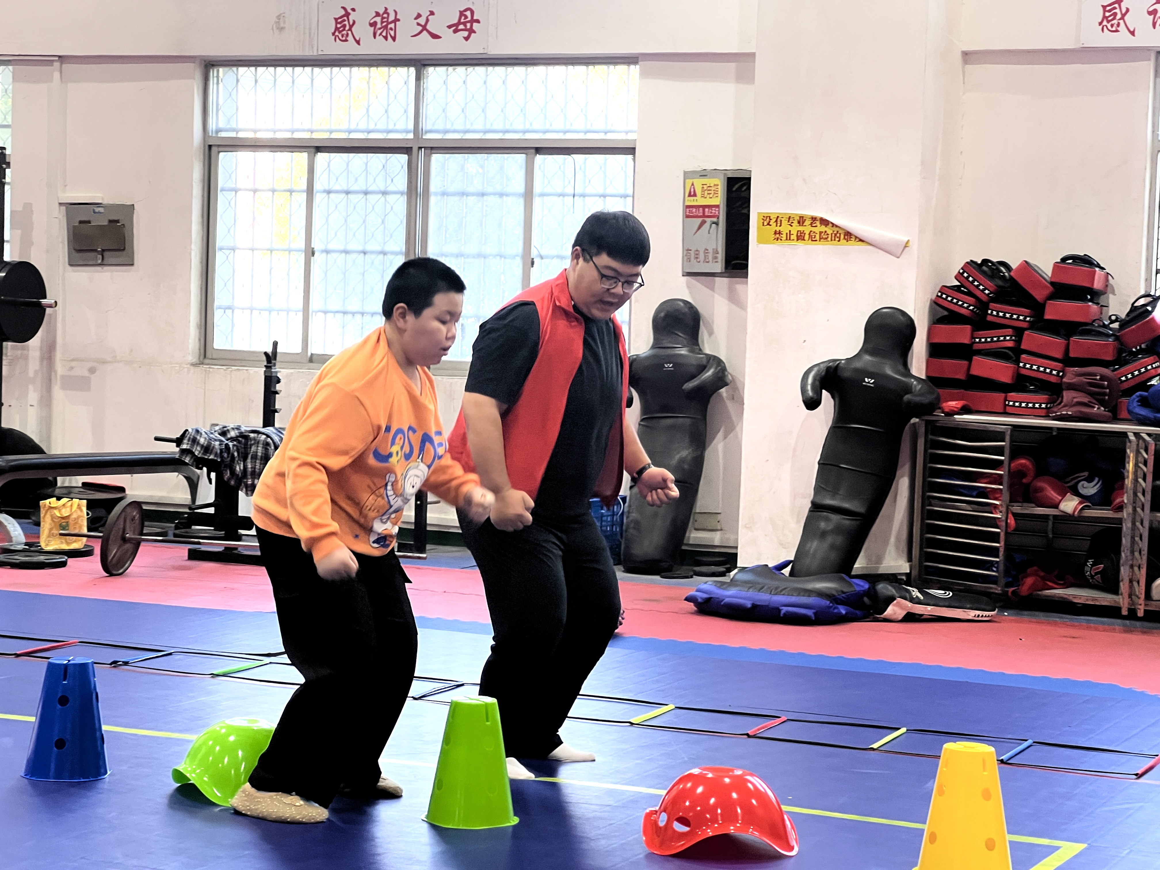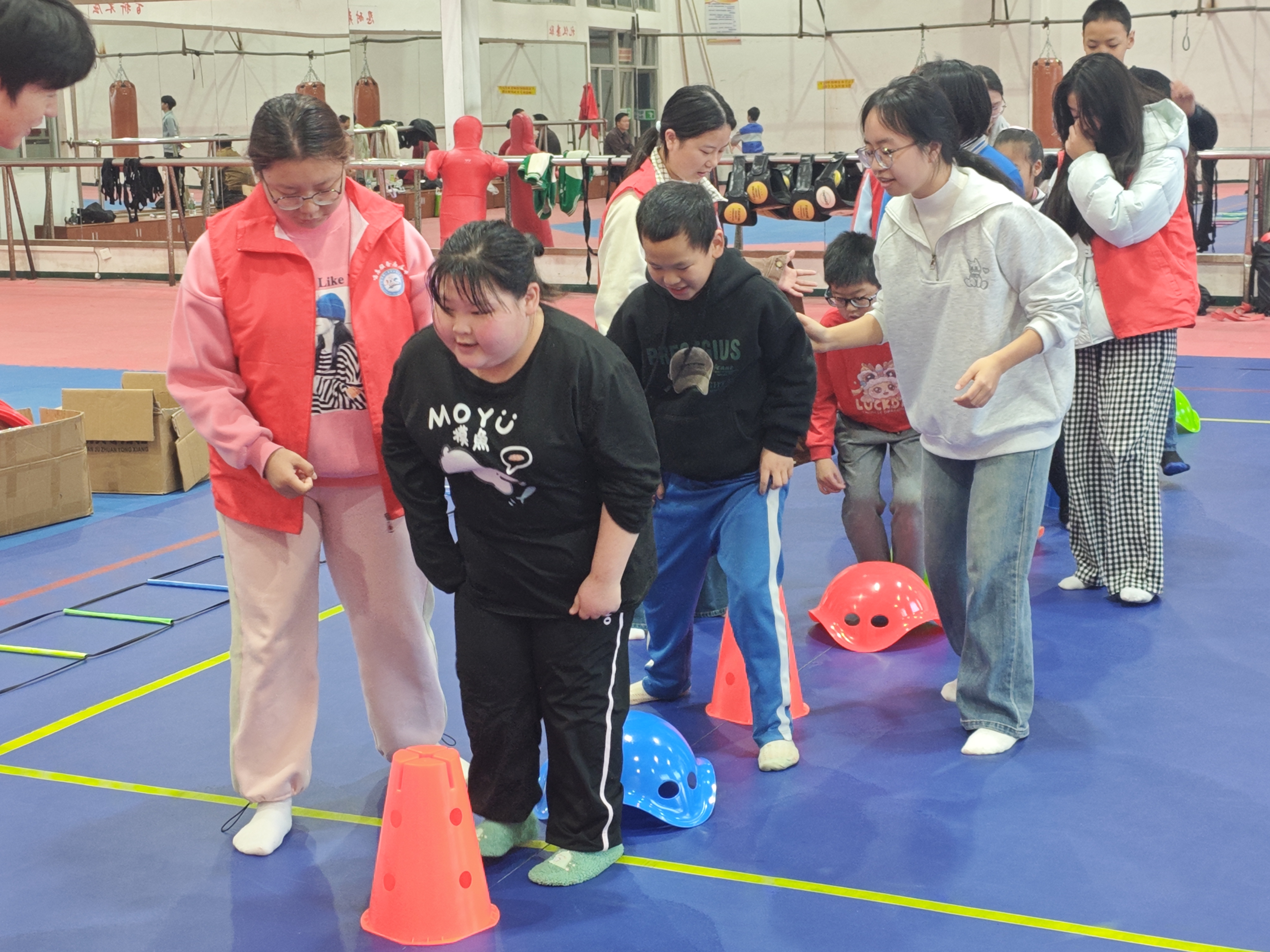 障碍走,挑战平衡,小小的身影在志愿者一对一的陪伴下,从摇摆到稳健踏出的每一步,都是战胜内心恐惧的勋章;开合跳、老虎爬,记不住动作没关系,身旁总有及时的辅助与鼓励。在这里,每一次尝试都被看见,每一次进步都被喝彩。在这里,运动是媒介,耐心是语言,见证着协调性与自信心在汗水与欢笑中,悄然生长。