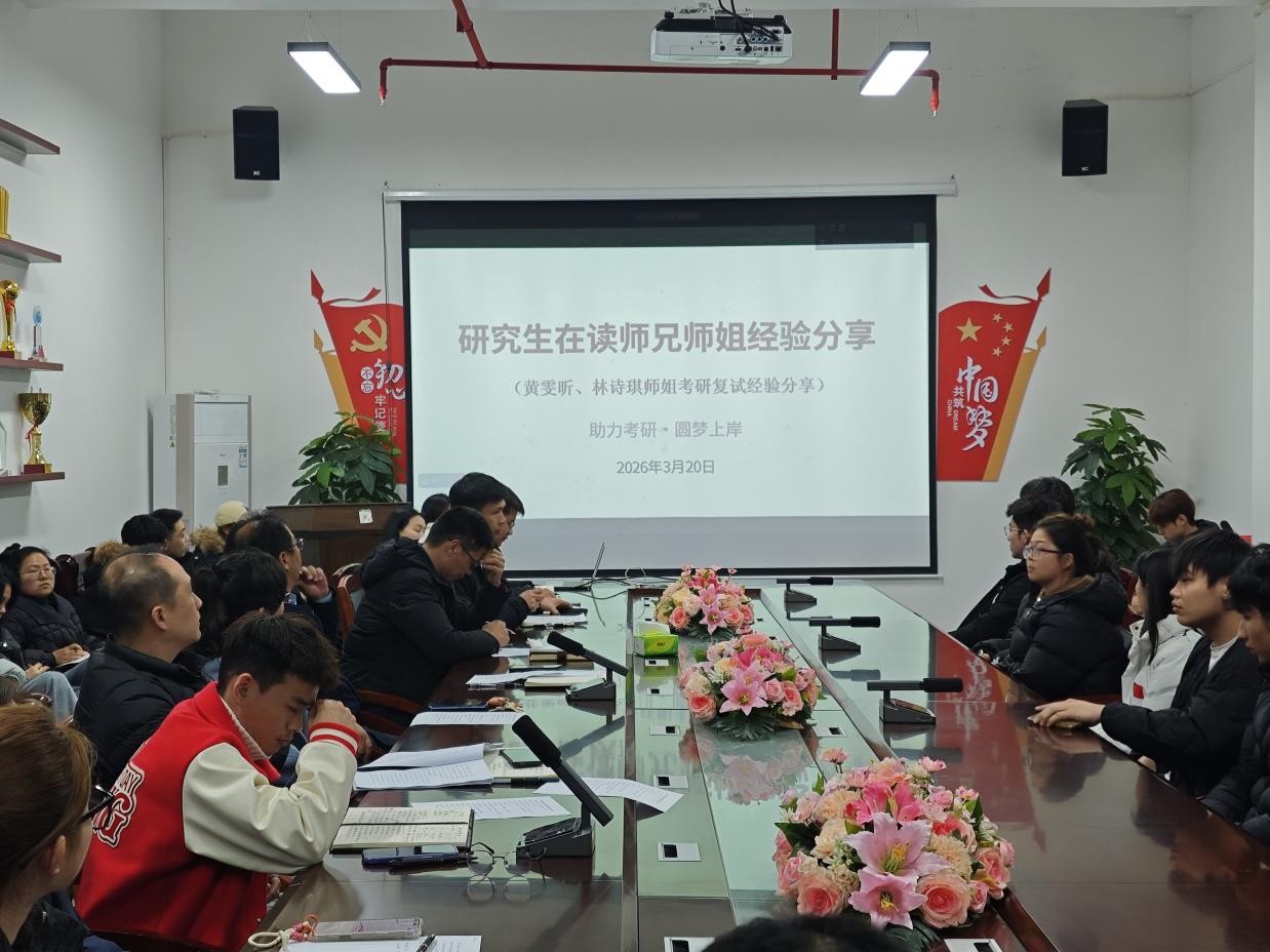 (体育学院供稿)为切实做好2026年硕士研究生复试备考指导工作,帮助考生明晰复试流程、掌握应试技巧,为学生搭建考研交流平台,3月20日,在文化艺术中心W102召开体育学院2026年考研复试指导暨考研班成立会议。学院领导、教研办负责人、学工办全体教师、22级班主任、22级考研复试考生以及有意向考研的同学共同参加会议,会议由钟国浩老师主持。