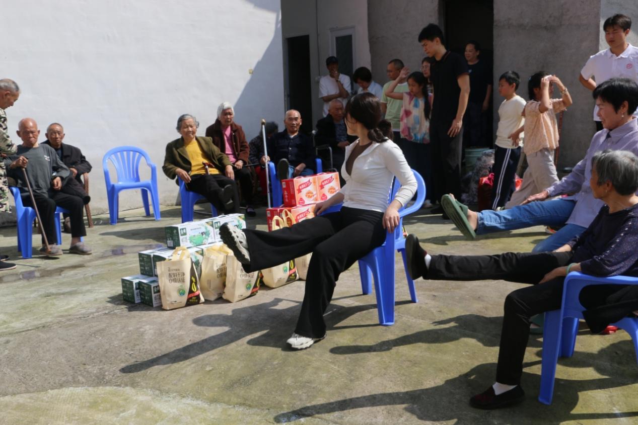活动现场,志愿者们首先为老人们送上爱心生活物资,传递青年学子的真诚关怀。随后,结合高龄老人的身体特点,志愿者们开展了一系列精准健康服务:细致完成基础身体检查,全面了解老人的身体状况与日常运动习惯;依托专业优势,手把手教授安全有氧运动及关节康复动作,耐心讲解动作要领、纠正不规范姿势,并叮嘱老人科学、适度运动,以改善身体机能、提升生活质量。
