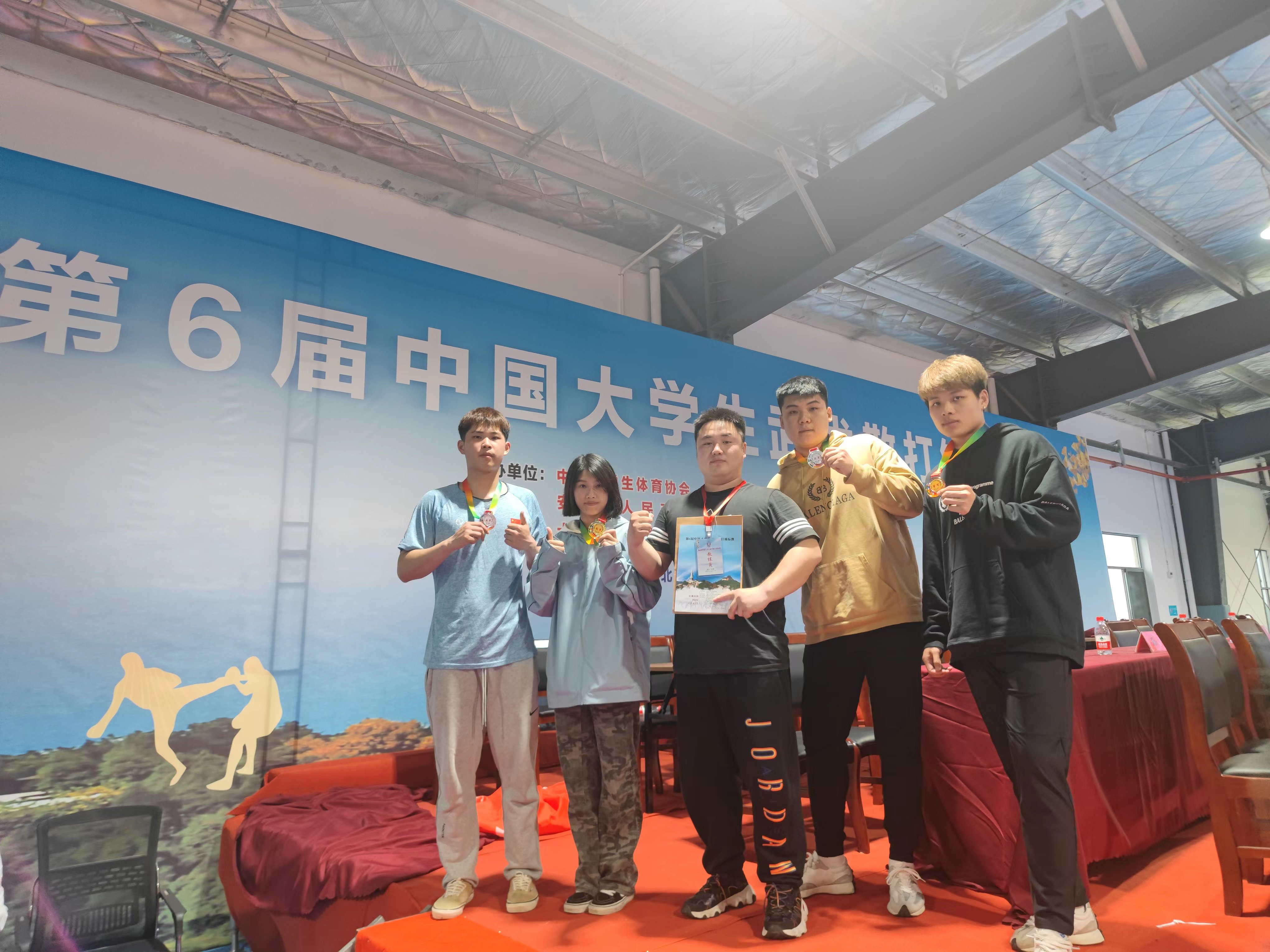 本站讯(学生记者 谢毅)2023年4月8日,由教育部、国家体育总局、中国大学生体育协会主办的第六届全国大学生武术散打锦标赛在湖北安陆市正式开赛,为期四日。此次比赛吸引了来自全国108所高校的1099名运动员参赛。宜春学院散打队由李胜男老师担任教练员,共带领四名队员参赛。我院队伍在本次比赛中取得了优异的成绩——女子易宇清甲B组51公斤级冠军、男子王奕栋甲B组85公斤级亚军、男子尤志楷甲B组100公斤级亚军、男子陈承华甲B组76公斤级季军。