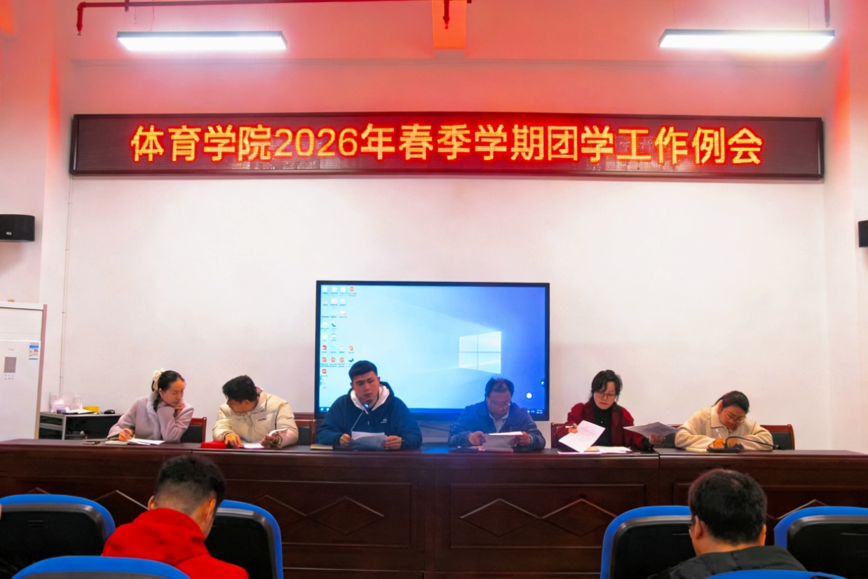 本站讯(学生记者 颜丹)3月5日下午,体育学院在文化艺术中心东侧E203大会议室召开2026年春季学期第一次团学工作例会。院党委书记屈红林、副书记于梅及全体辅导员班主任及参加,会议由学生工作办公室(团委)钟国浩主持会议。会议旨在全面总结上学期团学工作成效,部署新学期学生管理与团学工作,进一步凝聚育人合力,确保新学期各项学生工作平稳有序推进。