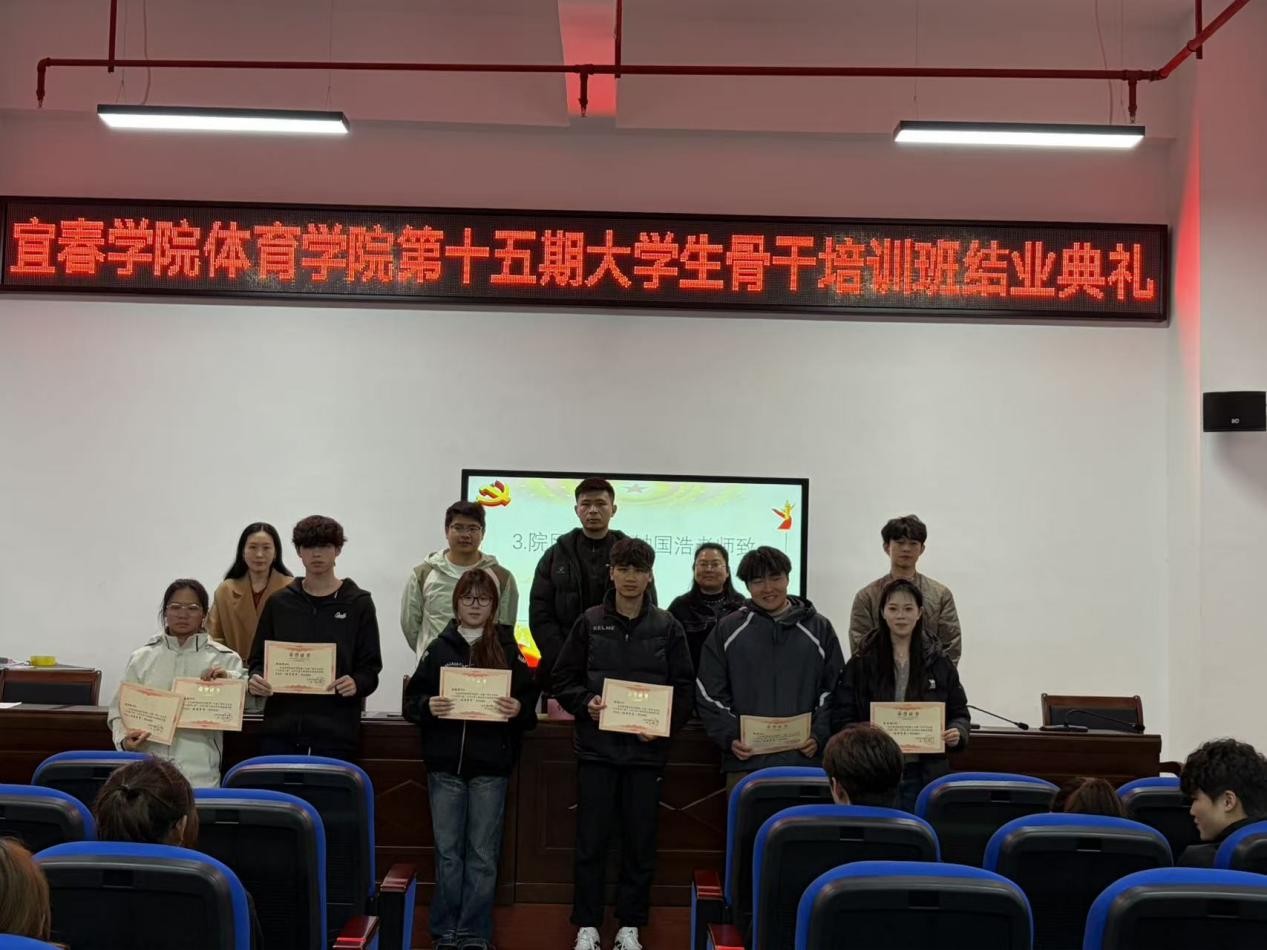 本讯站(学生记者 王舒妃 曹旭)4月2日下午,宜春学院体育学院第十五期学生骨干培训班结业仪式在文化艺术中心E203顺利举行。院团委书记钟国浩老师,学生工作办公室刘成老师、饶小志老师、管婷老师出席本次仪式,全体大学生骨干共同参与,为本次培训画上圆满句号。