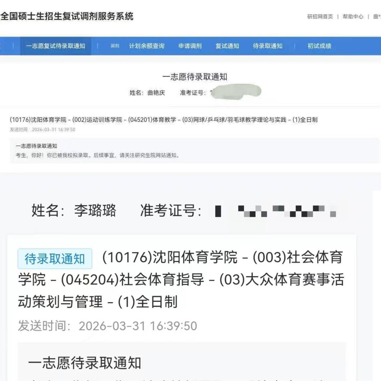 祝福曲艳庆、李璐璐!愿你们在沈阳体育学院继续追逐体育之光,续写属于你们的青春华章!